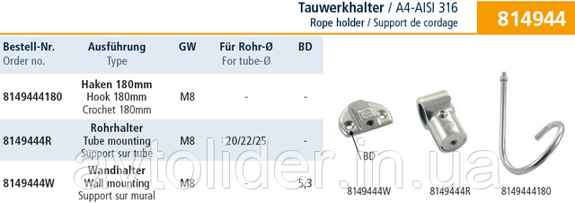 тримач — гак для каната виготовлена з неіржавкої сталі А4 (AISI 316).