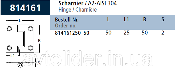 шарнірна петля виготовлена з нержавіючої сталі А2 (AISI 304).